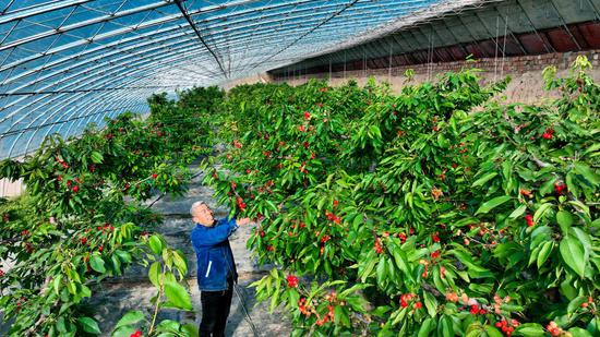 2月24日,贺兰县习岗镇新平村峻松樱桃采摘园内果香四溢。设施农业直接带动新平村3000多名农民稳定增收。近年来,贺兰县打造规模化设施农业园区,推动传统农业转型升级。记者 马楠 马赛尔 摄
