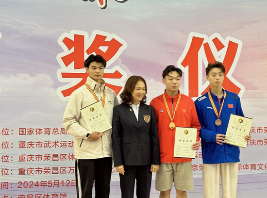 男子壁挂拳运动员魏超凡(左一)在颁奖中。