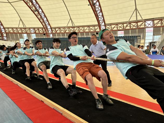 “一二!一二!” 加油声、呐喊声此起彼伏,随着哨声的响起,比赛开始,双方队员紧握绳子,用力向后拉,队伍随着口号有节奏地向后退、向后压。比赛过程中,各组参赛队员奋力拼搏,展现出了良好的比赛风貌。