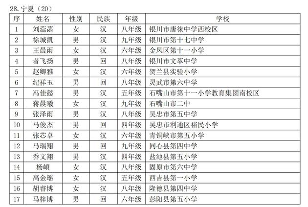 第十六届宋庆龄奖学金获奖候选人名单(宁夏部分)