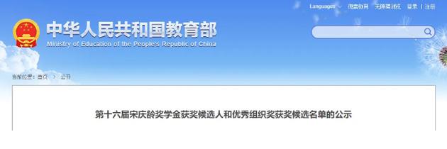 第十六届宋庆龄奖学金获奖候选人和优秀组织奖获奖候选名单的公示