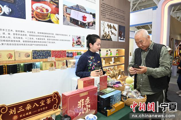 宁夏非遗工作人员、非遗传承人、高校团队等一行三十余人,携着他们匠心之作,亮相博览会。展览会上展出:固原砖雕、宁夏手工毯、宁夏剪纸、中卫建筑彩绘、宁夏刺绣、宁夏民间乐器、泥塑、麻编、刘三朵八宝茶、面塑等10个项目,每件作品都汇聚着宁夏非遗传承人的精湛技艺和创新精神。