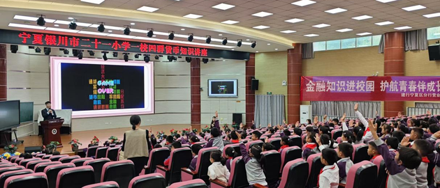 近日,建行宁夏区分行营业部“张富清先锋队”走进银川市二十一小学,举办了一场别开生面的金融知识进校园活动,为在校师生们精心准备了一堂金融知识“大餐”。“人民币防伪小知识”“守住钱袋子”“电子货币知多少”,广大师生足不出校就能了解到最实用的金融知识。