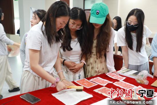 讲座结束后,师生们参加了“古籍保护课程进校园”非遗技艺展示体验活动,宁夏图书馆(宁夏古籍保护中心)工作人员现场展示线装书制作、石刻传拓、雕版印刷、古籍修复等技艺,吸引众多师生驻足观摩体验。随后,与会嘉宾和师生们参观了在宁夏大学图书馆二楼举办“宁夏大学图书馆珍贵古籍文献展”,此次展览甄选出《香南精舍金石契》《汉石例》《河东先生集》等馆藏珍贵古籍,使广大师生近距离感受古籍文献之美。
