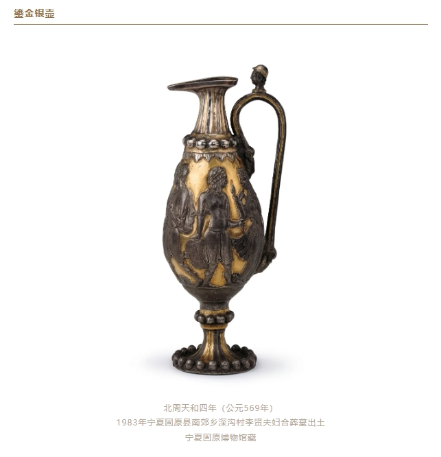此次展览精心设计为两周、南北朝、隋唐三大篇章。2017年度全国十大考古新发现——彭阳姚河塬遗址出土的“稼稷”卜骨闻名遐迩;同展的象牙梳、铜簋等礼器,再现了周王朝礼乐文明在边陲的扎根历程;北周李贤墓出土的鎏金银壶、玻璃器等丝路瑰宝,以及隋唐史氏家族墓中的精美壁画,见证了固原作为丝路东段北道枢纽的繁荣,直观呈现异域与中华文化的融合之美。