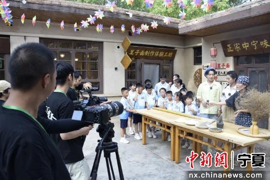 中新网宁夏新闻7月20日电 (记者 于晶)近日,湖南广电的大型青少年研学美育综艺节目《跟着课本去旅行》栏目组来到黄羊古落旅游区,深入挖掘当地的非遗,将镜头聚焦在黄羊钱鞭和非遗蒿子面两大非遗,为观众们揭开一段精彩的文化之旅。