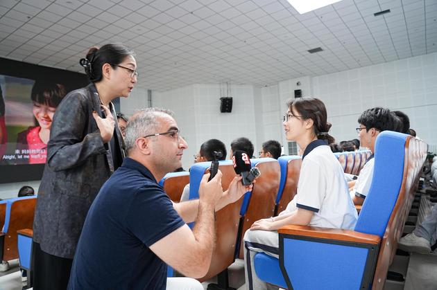 “感知幸福中国行”宁夏主题参访活动团队采访北师大银川学校学生。