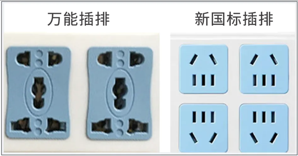 “万能插线板/万用孔”,也就是在同一个插位,既可以插两极插头,又可以插三极插头的万用型插座,从2010年6月起就被禁止生产了。