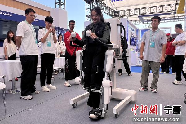科技展区内,智能可穿戴监测设备、AI辅助诊断系统等数字健康技术引起了留学生们的浓厚兴趣。巴基斯坦留学生萨微丽体验外骨骼机器人后兴奋地说:“这个机器非常有趣、神奇,它使用了非常先进的科技,虽然是机器在推动我走,但是就像我自己在行走一样,这种机器能真正帮助患者行走。”