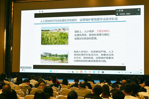 在大会报告期间,中国工程院院士、同济大学环境科学与工程学院教授徐祖信,住建部村镇建设司治理处处长鞠宇平,生态环境部土壤与农业农村生态环境监管技术中心研究员李松,ANSO环境科技产业联盟(村镇)理事长、中国科学院生态环境研究中心研究员刘俊新,善水博通(宁夏)环境科技有限公司水环境研究院院长马晓龙等7名行业专家和企业代表分别作了《农村生活污水人工湿地处理关键》《“十五五”村镇水环境治理工作的建议》《美丽乡村建设路径及典型案例》《新形势下如何创新村镇污水治理体系》《西北地区农村污水治理现状与资源化利用模式研究》等多项主旨报告。