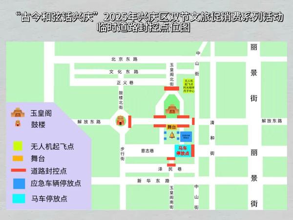 临时交通管制范围:以鼓楼-玉皇阁活动区域周边主干道及支路为主,最终以保障活动场地周边交通有序管控为准。