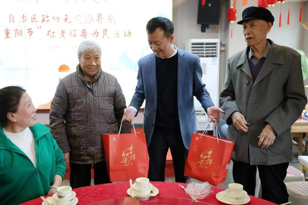 自治区政协常委、无党派界别召集人施晓军(右二)为参加活动的老人送上伴手礼。