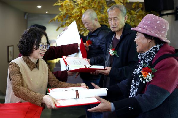 自治区政协委员牛尔惠、马国庆为“孝老爱亲奖”“孝心守护奖”“夫妻和睦奖”“真情坚守奖”获奖者颁发荣誉证书与奖品。