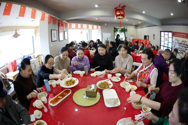 参加活动的老人们齐聚一堂,享受低碳美食。