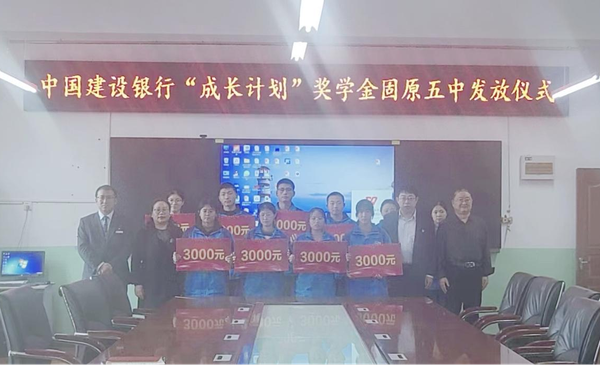 (建行固原分行为固原五中学子发放“成长计划”奖学金)