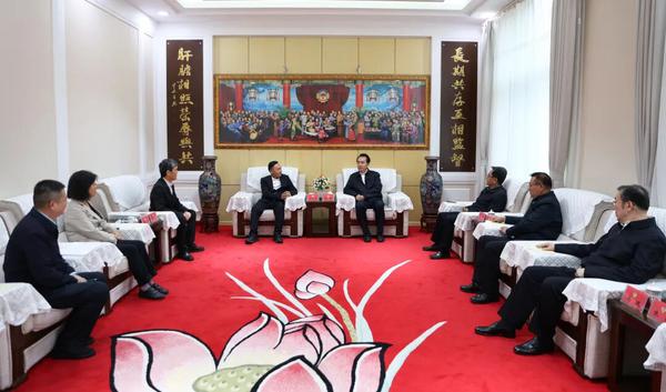 10月10日,宁夏回族自治区政协主席陈雍、副主席许宁会见安拓集团董事长、台商林文进,新莱集团董事长、台商李水波,昆宁森态乳业(宁夏)有限公司董事长徐刚等台商代表和来宁投资企业家,欢迎更多昆山企业家来宁考察投资、共谋发展。(毛硕 摄)
