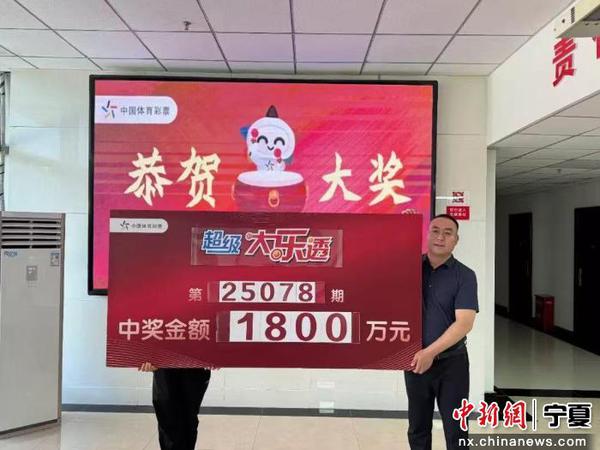 中新网宁夏新闻7月15日电 (记者 于晶)7月14日,宁夏体彩中心兑奖大厅迎来了一位喜悦的兑奖者——王先生(化姓)。他于7月12日晚开奖的体彩超级大乐透第25078期中,凭借一张单式追加投注彩票,成功揽获一等奖1注,总奖金高达1800万元。该大奖出自宁夏灵武市6424024276体彩销售实体店。