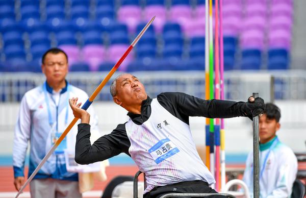 12月10日,男子标枪F52级比赛中,宁夏运动员马占贵以11.08米的成绩夺冠。