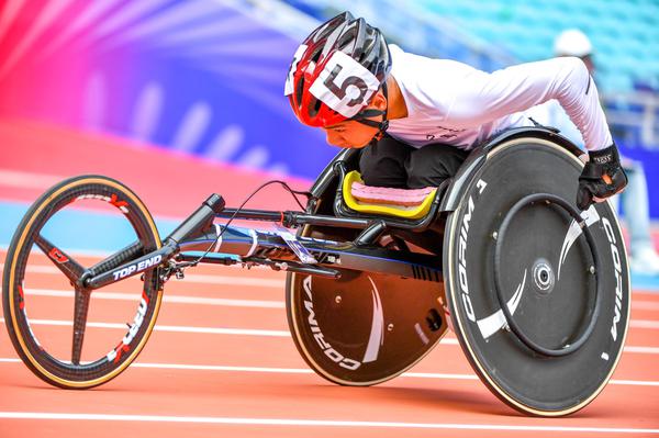 男子竞速轮椅400米T52级冠军,是宁夏选手马宁在本届残运会上的第二枚金牌。