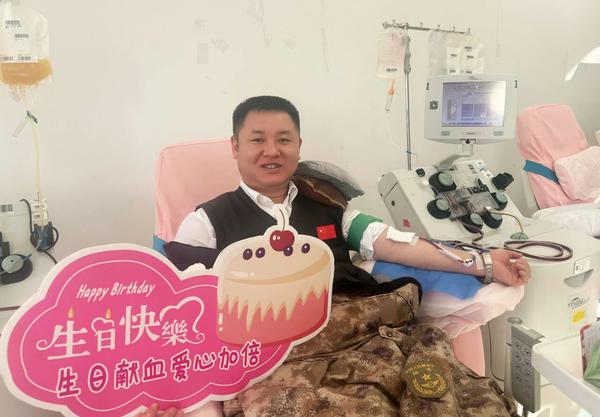 生日期间,王欢来到宁夏血液中心献血。