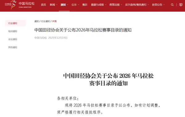 中国田径协会公布
