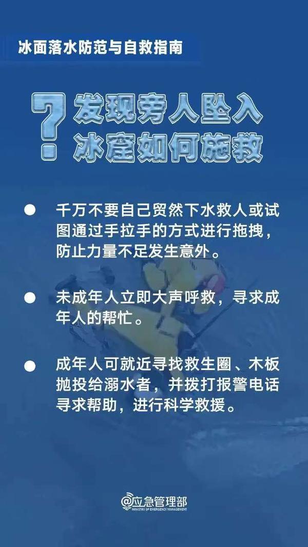 同时,通过校园、社区宣传及媒体科普等多种渠道,广泛普及冬季冰上安全常识,引导市民远离野冰区域,前往正规冰场开展娱乐活动。广大市民尤其是河湖周边居住群众,要提高安全防范意识,不要让未成年人在冰面附近玩耍,杜绝一切擅自上冰行为。