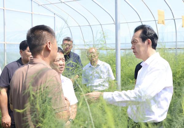 8月14日,宁夏回族自治区政协主席陈雍带领部分自治区政协委员,在同心县下马关镇芦笋种植基地调研特色产业发展情况。(单瑞 摄)