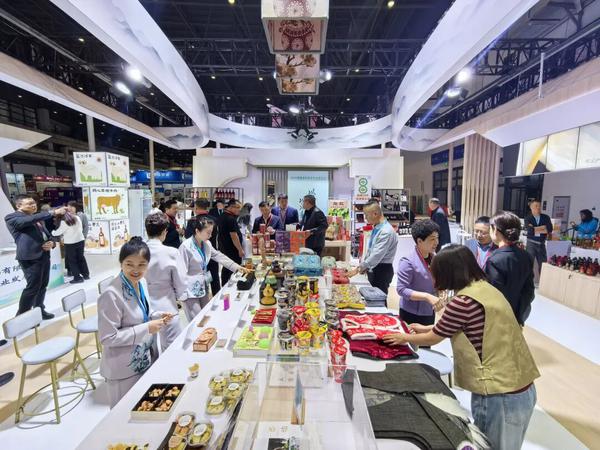 宁夏展区各类特色产品集中亮相,吸引大批观众驻足品鉴。