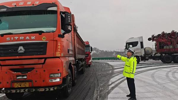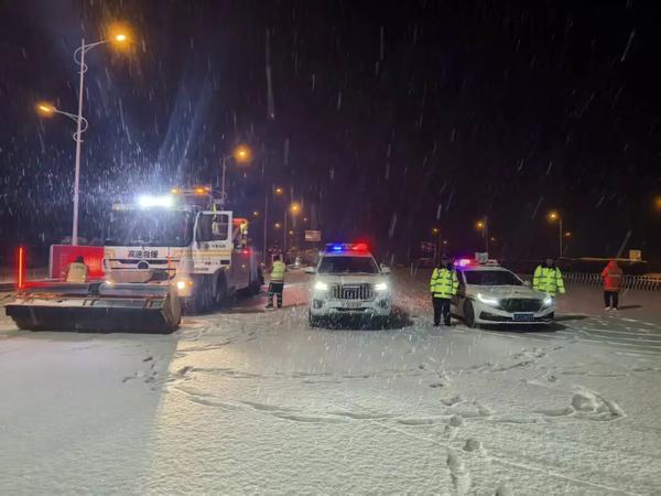 安全提示:受降雪影响道路结冰,请通行高速公路车辆减速慢行、保持安全车距,听从路面巡逻警车和收费站工作人员指挥。