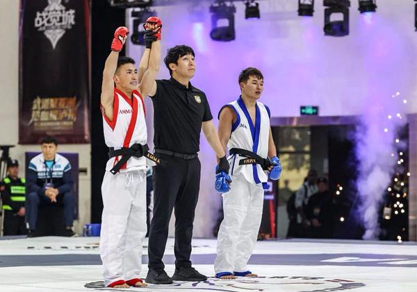 在首场进行的男子56公斤级比赛中,由中国队选手田龙对阵哈萨克斯坦队选手。整场比赛田龙战术清晰,凭借强有力的地面技术与站立打击掌控节奏,最终以TKO(技术性击倒)方式赢得胜利,取得开门红。此役也提振了中国运动员的士气,为后续征战奠定了良好开局。
