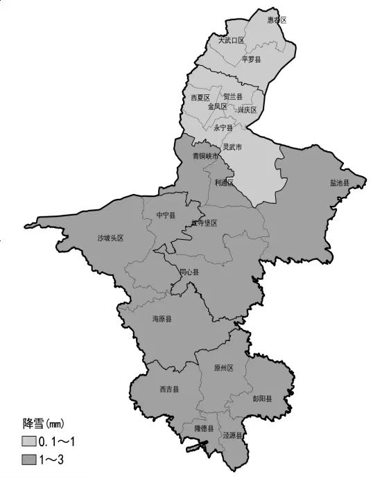降雪:29日,吴忠、中卫、固原三市有小到中雪(1~3毫米),积雪深度1~3厘米;银川、石嘴山两市微到小雪(0.1~1毫米),积雪深度1厘米以内。