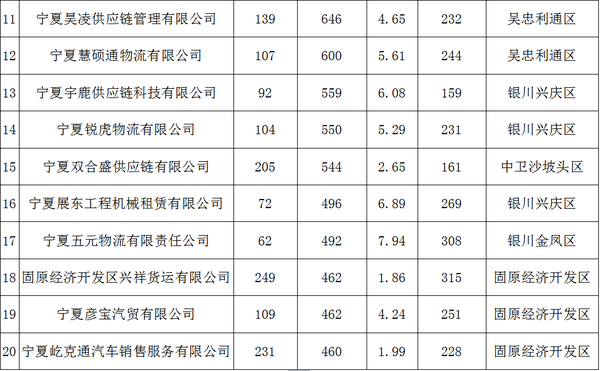 全年车均违法量明显突出的企业分别为宁夏五元物流有限责任公司(7.94条/车)、宁夏达盛昌物流有限公司(7.80条/车)。