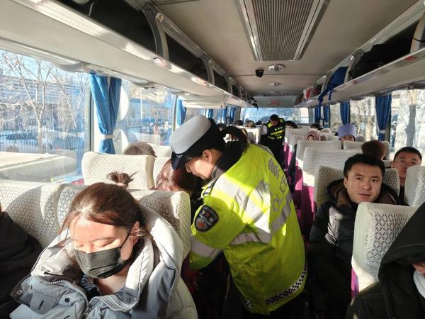 9时许,在车站出站口,银川市公安局交通警察分局兴庆区一大队副大队长张宁阳正对一辆即将发往固原的客运班车进行安全检查。他仔细核查驾驶员证件,测量轮胎花纹,并清点乘客人数,防止超员。“春运期间,我们将在重点区域增设执勤点,加大巡查力度。”张宁阳说。