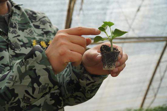 石彦龙讲解西瓜嫁接南瓜苗技术。