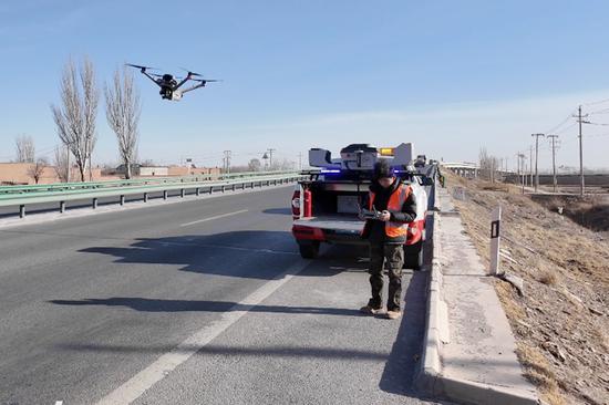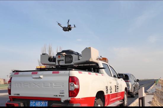 此次投入应用的新装备,是在原有AI智慧巡检车的基础上,创新集成了车载无人机及红外线巡检装置,构建起“空中无人机巡查+地面车辆核验”的高效协同模式,重点破解公路桥梁、高边坡等人工难以覆盖的巡查盲区,强化对路面车辙、拥包等变形类病害的精准识别能力。