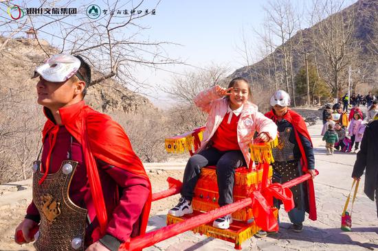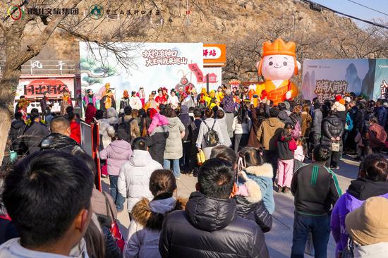 围绕“大王叫我来巡山”这一主题,滚钟口景区精心打造了一个充满奇幻色彩的“山灵幻境”。景区市场部负责人宿祎告诉记者,活动中游客们不再是旁观者,而是化身为“巡山小妖”,深度参与到一场贯穿游览全程的沉浸式大戏中。从入口处NPC(非玩家角色)的热情迎宾,到游览路线上的“西游问答”“仙妖套圈”“福气投壶”等趣味闯关任务,每一处互动都巧妙融入了西游元素。游客完成挑战后可赚取特制“银票”,用以兑换独具匠心的特色文创纪念品,极大地激发了参与热情。