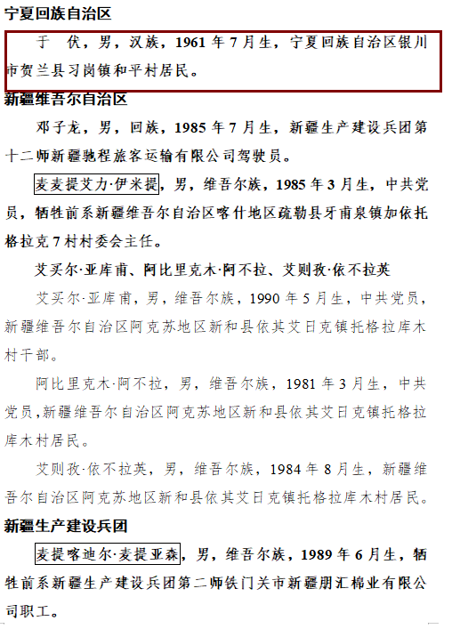 于伏,男,汉族,1961年7月生,宁夏回族自治区银川市贺兰县习岗镇和平村居民。