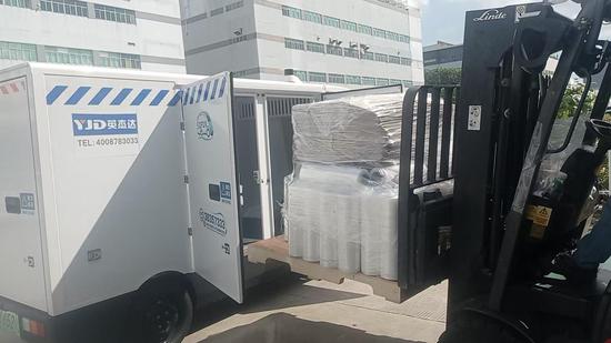 英杰达无人车在深圳富士康装货。(受访对象提供)