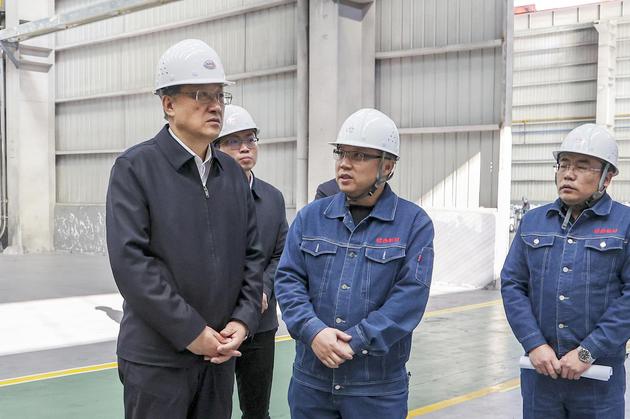 李邑飞在宁夏恒鼎新材料科技有限公司,调研项目建设情况。
