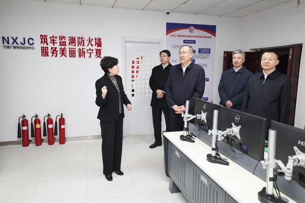 李邑飞在宁夏广播电视局,调研安全播出预警工作情况。