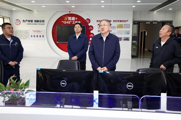 李邑飞在长城水务公司长城水厂调度中心,察看值班值守、安全监管等情况。