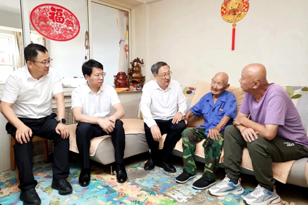 庄严看望慰问抗战老战士老同志高如龙、李杰,与他们同忆革命岁月、畅谈如今的幸福生活。当听到“党让干啥就干啥”的深情讲述时,庄严说,抗战老战士老同志作出了不可磨灭的贡献,要加强关心关怀、自觉对标看齐,让他们的感人事迹和革命精神在新时代续写新篇章。