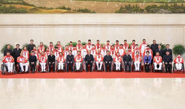 宁夏回族自治区领导与全国残特奥会宁夏代表团合影。