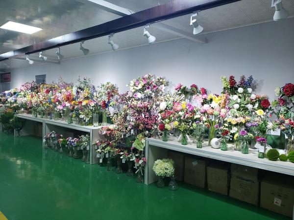 宁夏隆德人造花工艺有限公司的展厅里,姹紫嫣红的仿真花。