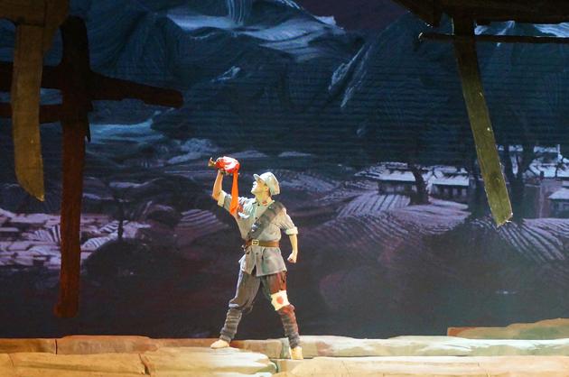 原创音乐剧《花儿与号手》是宁夏演艺集团歌舞剧院于2017年5月创排,2018年3月在银成功首演。“诗中观史,史中觅诗。”音乐剧是以红军长征路过六盘山为背景创作完成的,展现了军爱民、民拥军、军民一家亲的鱼水深情,以及长征路上红军战士的理想信念和情感历程。全剧充满宁夏“花儿”与江西民歌的交汇,散发出山野风情与崇高理想的共鸣,凸显对美好心灵、青春和生命的赞美。《花儿与号手》的演绎既是一场历史之旅,也是一场审美之旅,更是一场铸魂之旅。