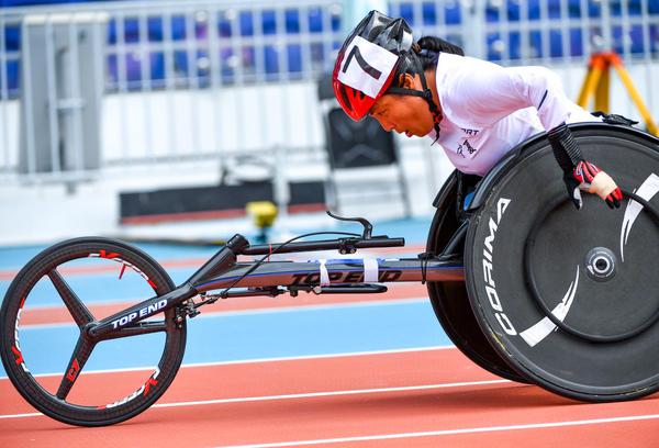 男子竞速轮椅400米T52级冠军,是宁夏选手马宁在本届残运会上的第二枚金牌。