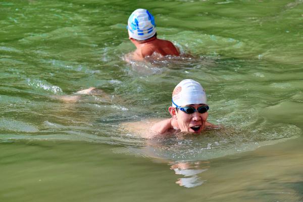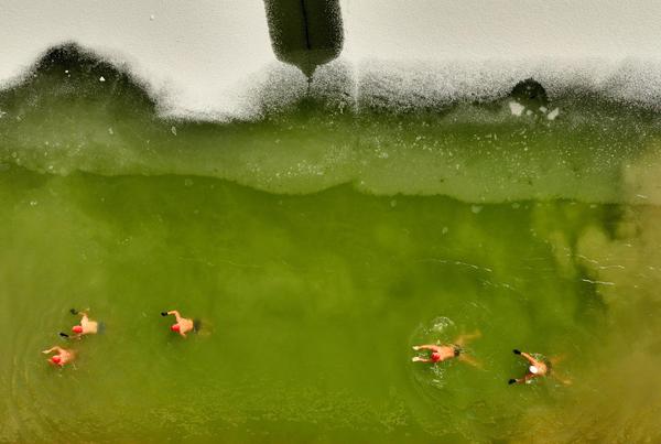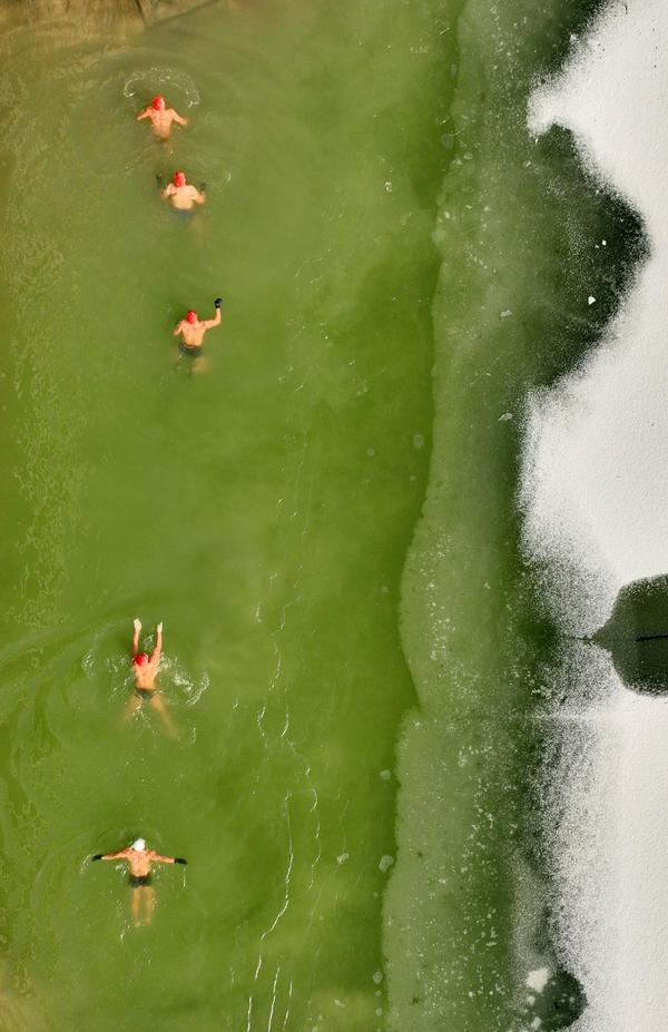 寒冷的天气丝毫未能阻挡冬泳爱好者的热情。