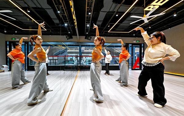 市民在银川阅彩城跳动全城舞蹈培训机构习舞。