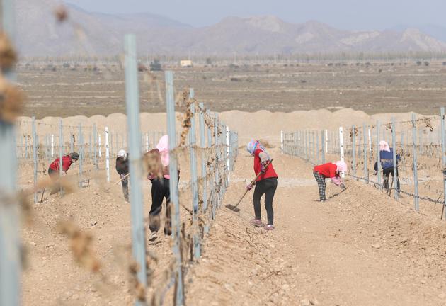 在酿酒葡萄种植基地,中新社记者看到,工人在埋土前先进行“冬剪”,将葡萄藤修剪至合适的长度,并预埋至地面以下不超过20厘米的位置。中粮长城天赋酒庄基地管理部副经理刘慧斌介绍,“世界其他产区都不剪枝和埋土,这是贺兰山东麓特有的,只有剪到特定位置才能保证来年葡萄藤能够正常挂果”。