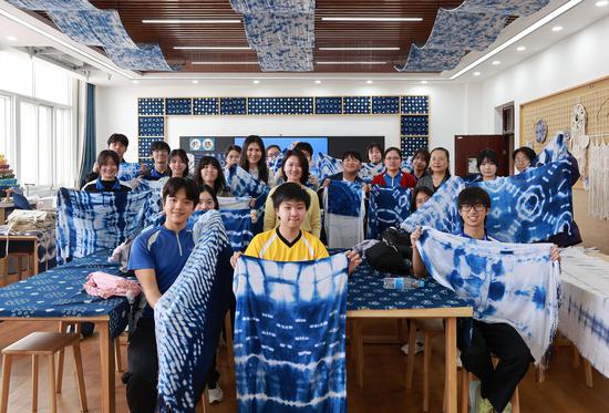 5月6日,参与“宁夏历史文化、自然资源与环境保育探索之旅”交流活动的香港学生在宁夏银川市第六中学体验扎染课。张冰 摄